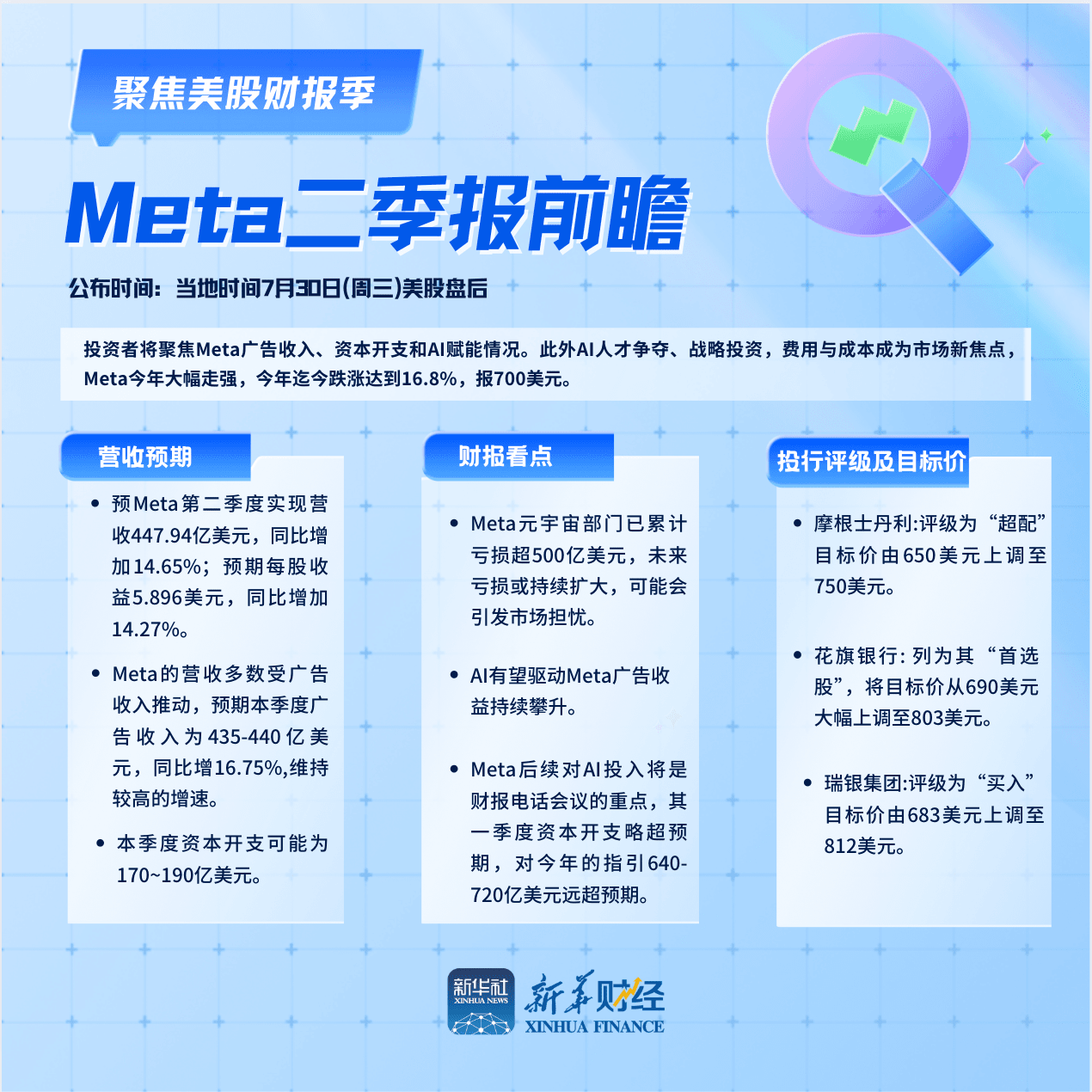 Meta今年以来受AI推动股价大幅走强,今年迄今跌涨达到16.8%,报700美元。对于此次财报,投资者将聚焦其广告收入、资本开支和AI赋能情况。此外AI人才争夺、战略投资,费用与成本成为市场新焦点。